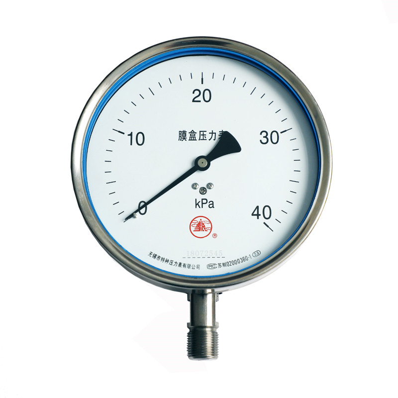 膜盒壓力表采用波紋膜盒作為測量微小壓力的敏感元件。膜盒壓力表適用于測量對銅和銅合金不起腐蝕作用,無爆炸危險(xiǎn)的微壓和負(fù)壓。表盤上面有調(diào)零裝置,可以方便調(diào)整零位。膜盒壓力表廣泛用于鍋爐通風(fēng)和氣體管道等設(shè)備上,膜盒壓力表可以就地安裝并現(xiàn)場指示壓力。