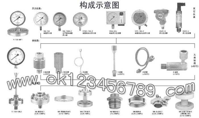 上面為功能型表頭,可以選用不同功能的表頭,達到指示或者控制的目的。
