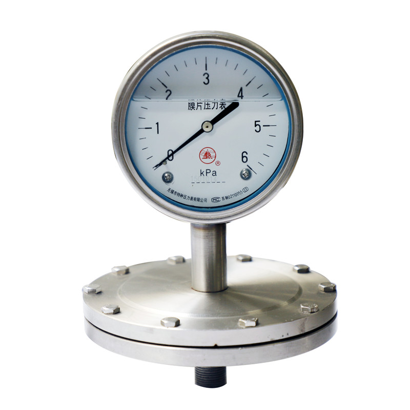耐震膜片壓力表內(nèi)部充灌阻尼液和配套緩沖裝置,具有良好的耐震性能。在被測(cè)介質(zhì)的壓力有強(qiáng)烈脈沖變化或壓力沖擊和在生產(chǎn)工藝中經(jīng)常突然卸荷的場(chǎng)合,以及環(huán)境震動(dòng)較大的場(chǎng)所中,耐震膜片壓力表都能穩(wěn)定進(jìn)行測(cè)量。